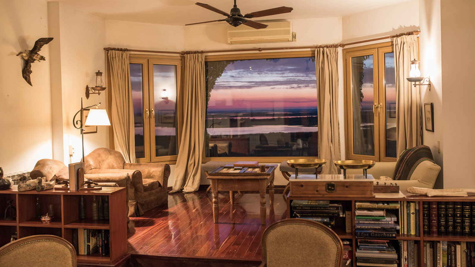 The premier Argentina Dove Hunting Lodge. Nestled atop a hill with dazzling views, our lodge provides an idyllic vantage point overlooking the Parana River’s flourishing wetland system, which is a constant water source for the abundant bird population, which roost and sleeps very near the lodge, in fields leased only and exclusively to Los Ombues.